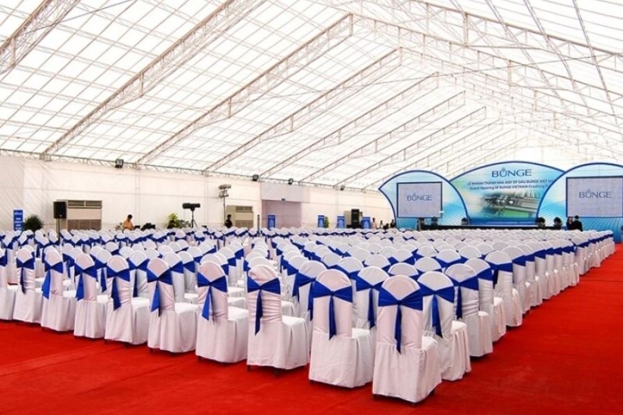 - Hệ thống trang thiết bị đồng bộ: Sự đầu tư mạnh mẽ vào hệ thống thiết bị mới, đồng bộ về mẫu mã và chất lượng là điểm cộng lớn giúp tăng tính cuyên nghiệp cho sự kiện. Nhà bạt, sân khấu và các phụ kiện đi kèm luôn được bảo trì định kỳ, đảm bảo không có sự sai lệch về màu sắc hay kích thước khi lắp đặt thực tế trên công trường. Trang thiết bị đồng bộ giúp tạo nên một tổng thể không gian hài hòa, chỉn chu, góp phần nâng cao vị thế thương hiệu của chủ nhân sự kiện.